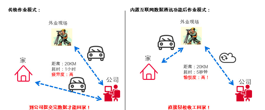 打破傳統(tǒng)城市測量模式必須回到公司才能進行數(shù)據(jù)傳輸?shù)亩ň?,新一代TZ系列全站儀能夠隨時隨地的實現(xiàn)數(shù)據(jù)成果分享,測量結束后直接收工回家,大大降低工作強度,感受更加愉悅、輕松的測量體驗!